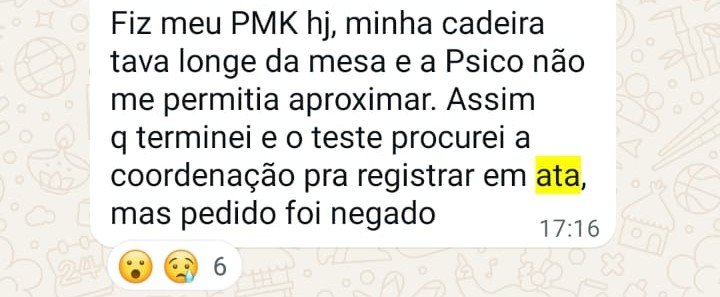 No dia 17/09/2025 houve relatos de psicólogos que não permitiam que os candidatos se aproximassem da mesa para realização dos testes, o que no entender de alguns candidatos os prejudicaram. A problemática que se apresenta é que quando os candidatos tentaram registrar em ata, tal pedidos lhes foi negado, indevidamente.